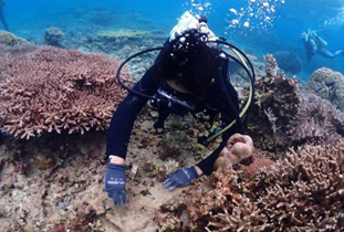 Coral reefs, which 30 percent of marine organisms are said to inhabit, serve as ecosystems that are vital to biodiversity conservation. Coral reefs in waters around Okinawa Prefecture are among the world’s largest, yet they have been considerably affected by global warming and other factors that have caused environmental degradation. Consequently, living organisms in the ocean have been losing their habitats, which has caused damage to biodiversity.