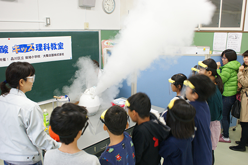 The event is held every year at Shinagawa Municipal Ushiroji Elementary School, near the Head Office. It is very popular with the children and teachers, with 68 fifth graders participating in FY 2024. Looking ahead, we will continue to expand opportunities to offer lab lessons to broaden stakeholders' understanding of Nippon Sanso.