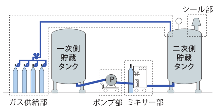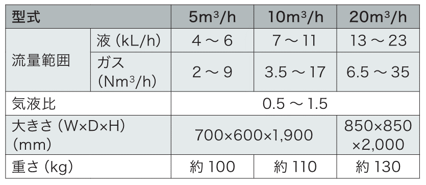 独自のミキサー構造で、高効率であることが最大のメリットです。また、危険物の液体に対しても可能です。
