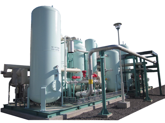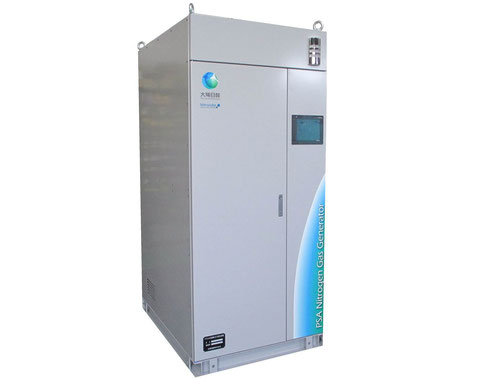PSA(Pressure Swing Adsorption:圧力変動吸着)装置は、特殊な活性炭を吸着剤として使用しております。 この吸着剤は物性の吸着速度を利用して、窒素より酸素を早く吸着する性質と、圧力下で高い圧力ほど酸素の吸着量が増大する性質を利用しております。 当社のPSA装置は、省電力化をはじめ、安全性の向上、コストダウンを実現させ、豊富な品揃えで実験室から大規模な工場に至るまで幅広くご使用いただいています。 国内外で2000台を超える実績があり、多種多様なご提案が可能です。