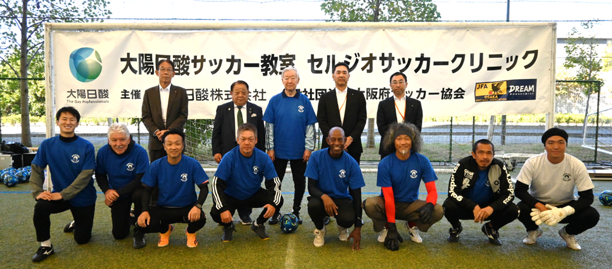 日本酸素ホールディングスグループの日本産業ガス事業会社である大陽日酸株式会社(本社:東京都品川区、代表取締役社長:永田 研二、以下、大陽日酸)は社会貢献の一環として開催している「大陽日酸サッカー教室 セルジオサッカークリニック 2023 (大阪)」を10月22日(日)にJ-GREEN 堺(大阪府堺市)で大阪府サッカー協会と共催しました。本クリニックはスポーツ活動を通じて青少年の健全な育成を図るべく 1990 年より千葉で開催を始め、大阪でも 2005 年より開催しています。