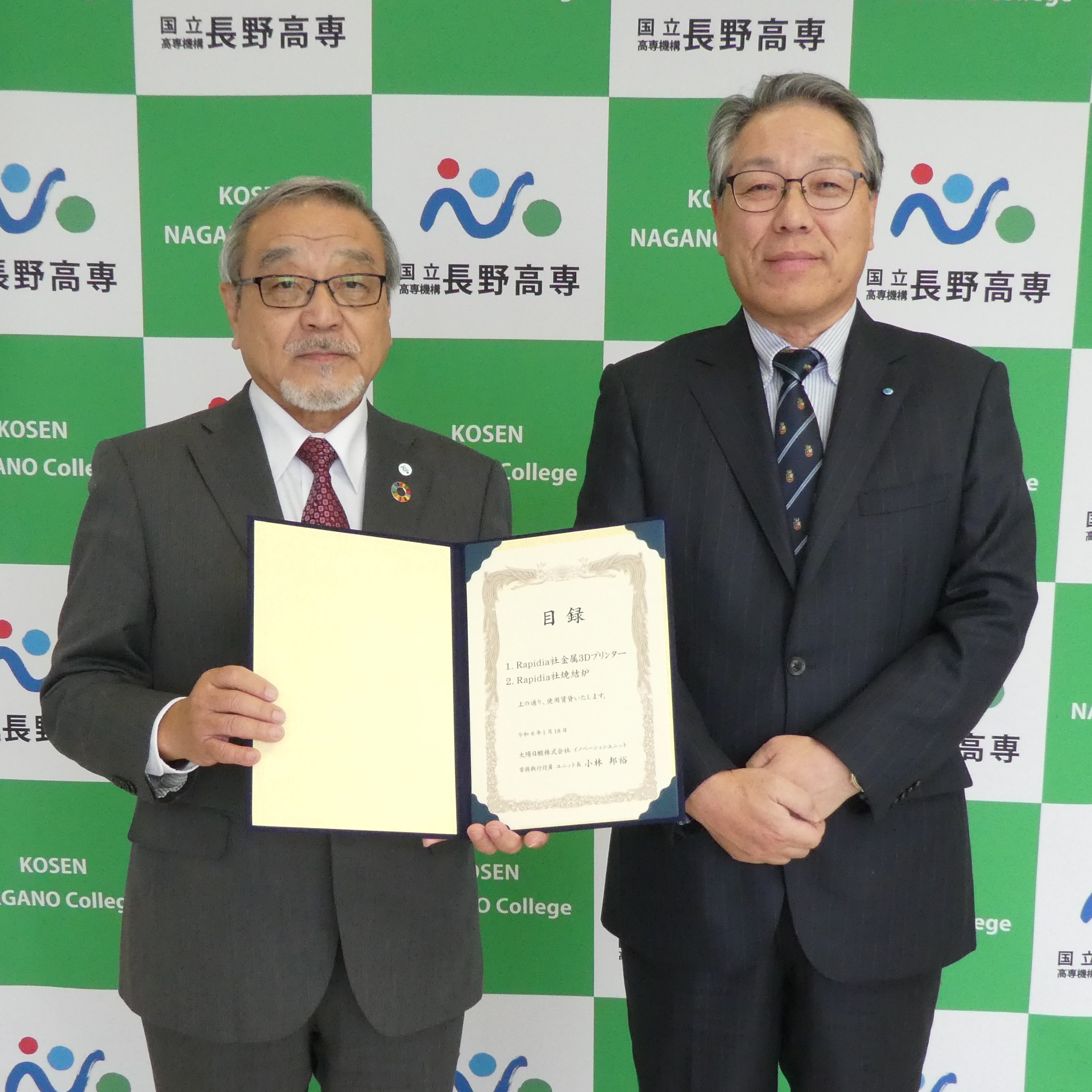 (長野高専江﨑校長㊧、大陽日酸イノベーションユニット小林ユニット長)