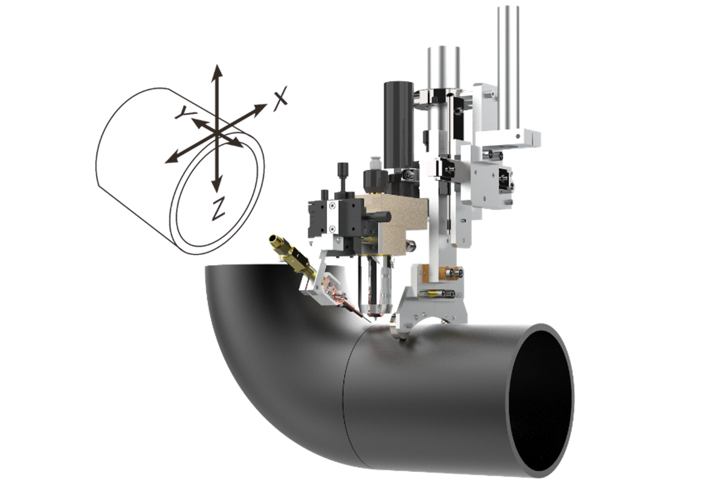 な機械式の倣い装置です。回転管溶接において自動化を可能にします。