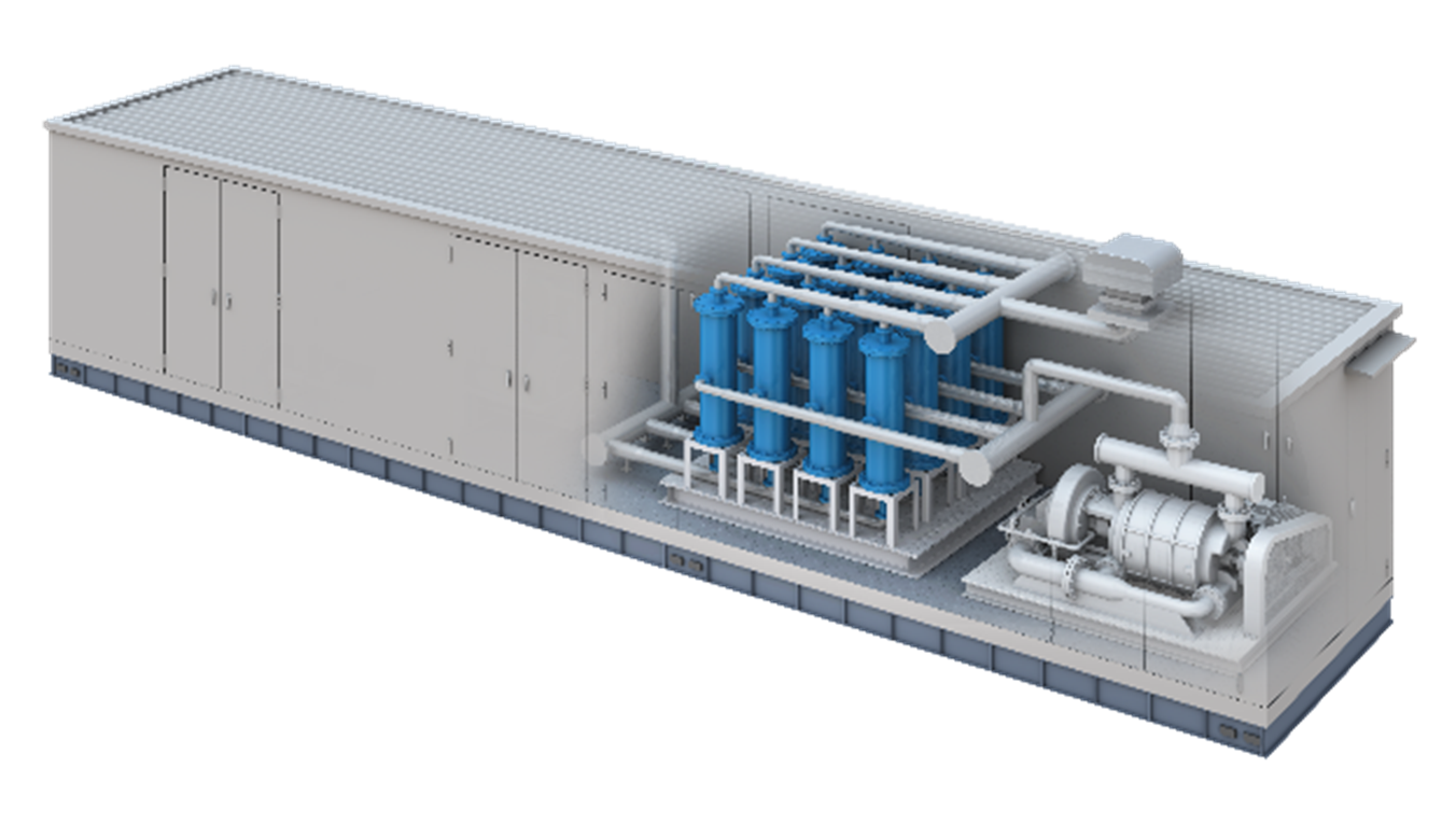 低濃度のCO2 を20~40%まで濃縮するための膜分離装置です。
