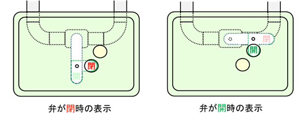 また、弁が開状態のときには「開」が、閉状態のときには「閉」がそれぞれ見えるような構造の表示部を操作ハンドルに取り付けたため、弁の開閉状態を容易に確認でき、操作ハンドルの誤操作を防止することができます。